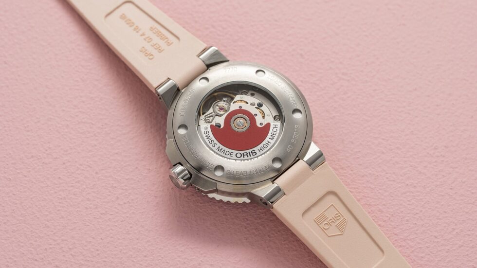 The familiar, tapered silhouette of the Aquis Date diver’s watch forms the base for each of the three pieces, but they will be remembered first for their high contrast Blush Pink, Aegean Blue and Seafoam Green dials.