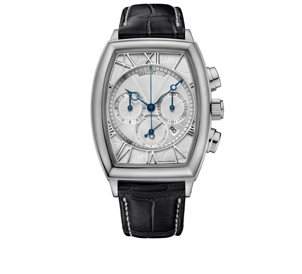 5400BB/12/9V6 Breguet The Breguet Héritage 5400BB/12/9V6 is a luxury men’s watch that will awe enthusiasts and collectors alike. Its 18K white gold case measures 42 x 35 mm and houses a self-winding movement with a 30-minute and 12-hour totalizer, as well as a date and small seconds display. The watch face boasts a silvered gold dial, hand-engraved on a rose engine for an exquisite and unique design. The curved tonneau-shaped case and alligator leather strap add to the watch’s elegance. With water resistance up to 30 meters (100 feet), this timepiece is perfect for the adventurous with a love for haute horlogerie.