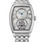 5497PT/12/PB0 Breguet The Breguet Héritage 5497PT/12/PB0 is an exquisite men’s wristwatch made from platinum. The watch features a tourbillon and a curved tonneau-shaped case that measures 42 x 35 mm. The hand-wound movement of the watch is engraved by hand, making each piece unique. The watch face exhibits small seconds on the tourbillon shaft, and a compensating balance spring with a Breguet overcoil ensures accuracy. The silvered gold dial of the watch is crafted using a technique called rose engine turning, which results in a beautiful and intricate design. The dial is also hand-engraved on a rose engine, adding to its aesthetics. The watch has a partial sapphire caseback, allowing for a view of the movement of the watch. Additionally, the watch’s balance spring is made from silicon, giving it an extra-thin Classique wristwatch style. With water resistance up to 30 meters (100 feet), this watch is suitable for everyday wear. The Breguet Héritage 5497PT/12/PB0 is a perfect choice for watch aficionados who appreciate masterful craftmanship and high quality materials.
