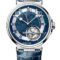 5887PT/Y2/9WV Breguet The Breguet Marine 5887PT/Y2/9WV Men’s Watch, a masterpiece of precision engineering and luxury design. This watch boasts a 43.9mm case made of high-quality platinum, with a blue dial showcasing gold, engine-turned detailing. Admire the elegant Roman numerals and luminescent dots on the hours chapter, as well as the unique running solar hand with a facetted golden sun. The watch also features an aperture between 10 and 11 o’clock for the days of the week, and between 1 and 2 o’clock for the months and leap-year cycle. The retrograde dates indication on an arc running from 9 to 3 o’clock adds a touch of sophistication. With a power reserve of 80 hours, you’ll never have to worry about running out of energy when you need it most. The self-winding movement with running equation of time, perpetual calendar, and tourbillon adds to the watch’s outstanding capabilities. Complete with an alligator leather strap and gold folding clasp, this watch is water-resistant up to 100m/330ft, making it an outstanding choice for any watch enthusiast.