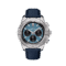 AB0147101C1X1 Breitling  This watch has a 44 mm Stainless steel case. Stainless steel unidirectional rotating bezel with ratcheting mechanism and seconds scale. Black inner bezel. Blue dial with three black sub-dials. Silvery applied hour markers with luminescent coating. Silvery hour hands with luminescent coating. Minute markers around the outer rim. Central second hand. The date window is located at the 6 o’clock position. This watch has three sub-dials chronograph : 60 seconds sub-dial at 9 o’clock, 30-minute sub-dial at 3 o’clock, 12-hour counter at 6 o’clock. The watch performs following functions: hours, minutes, seconds, date, chronograph. Self-winding mechanical movement is powered by a ?alibre 01 (Manufacture). 45 jewels. Power reserve approximately 70 hours. Case Thickness – 15.2 mm. Case back is transparent. Sapphire crystal protects front and back side of the watch. Blue calfskin leather strap with folding clasp buckle. This model is water-resistant up to 300 m.