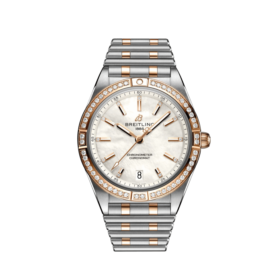 U10380591A2U1 Breitling The Breitling Chronomat Automatic U10380591A2U1 watch is a must-have for any watch enthusiast. With a 36mm case made of 18k red gold and stainless steel, it exudes both elegance and robustness. The distinctive features of this watch include a unidirectional ratcheted 18k red gold diamond bezel and a mother-of-pearl dial with gold-toned luminescent counters and diamond index hour markers. Moreover, the watch comes with a date function located at 6 o’clock and stainless steel & 18k red gold strap with stainless steel folding buckle, providing comfort and elegance at the same time. The Breitling Chronomat Automatic U10380591A2U1 watch is well-equipped with functions such as chronograph, hours, minutes, and small seconds, providing great versatility to its wearer. Powered by a self-winding Calibre “Breitling 01”, this watch also boasts a power reserve of approximately 42 hours, ensuring reliability for a longer period. This stunning timepiece is water-resistant up to 100m, allowing watch enthusiasts to wear it confidently during water activities like swimming and snorkeling. The unique combination of precious metals and accurate timekeeping make the Breitling Chronomat Automatic U10380591A2U1 watch an investment worth making for watch lovers who value digital values and luxurious style.