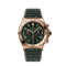 RB0134101L1S1 Breitling  This watch has a 42 mm 18k Red Gold case. Unidirectional 18k Red Gold bezel with ratcheted. 18K Red Gold crown. Green dial with three black cub-dials. Red gold-colored applied hour markers with luminescent coating. Red gold-colored hour hands with luminescent coating. Minute markers around the outer rim. Central second hand. The date window is located at the 6 o’clock position. This watch has three sub-dials chronograph : 60 seconds sub-dial at 9 o’clock, 30-minute sub-dial at 3 o’clock, 12-hour counter at 6 o’clock. The watch performs following functions: hours, minutes, seconds, date, chronograph. Self-winding mechanical movement is powered by a ?alibre 01 (Manufacture). 47 jewels. Power reserve approximately 70 hours. Case Thickness – 15.1 mm. Case back is transparent. Sapphire crystal protects front and back side of the watch. Green rubber strap with folding clasp buckle. This model is water-resistant up to 200 m.