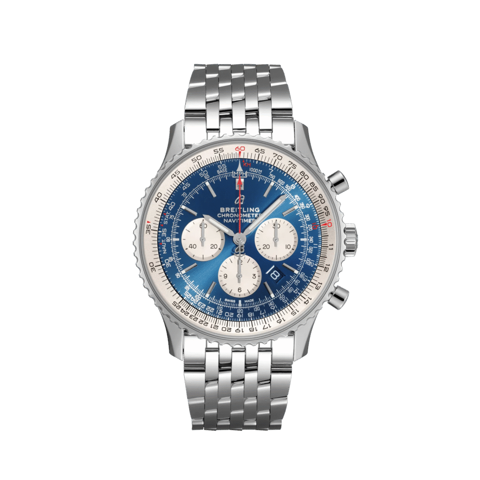 Discover the Breitling Navitimer AB0127211C1A1, a testament to luxury and engineering brilliance. This 46mm stainless steel masterpiece exudes both durability and sophistication with its robust construction and sleek design.