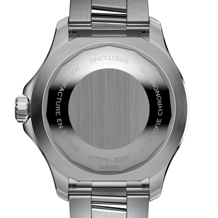 A17375E71G1A1 Breitling The Breitling Superocean Automatic A17375E71G1A1 is a top-quality men’s watch with a white dial with blue-toned luminescent Index and hour markers and blue-toned luminescent hands. The watch has a 42mm stainless steel case with a unidirectional bezel with ratchet stainless steel and blue ceramic and a screw-locked crown with two gaskets, providing added durability and protection. Powered by a self-winding mechanical movement – specifically, the Calibre Breitling 17 with 26 jewels and a frequency of 28,800 v.p.h – this watch provides a power reserve of approximately 38 hours. It features a case thickness of 12.5 mm, and the sapphire crystal is cambered and glareproofed on both sides. The case back is solid. The watch performs the following functions: hours, minutes, and seconds. The Breitling logo is displayed below the 12 o’clock position. It comes with a stainless steel bracelet with a folding buckle, which adds to its stylish and practical feel. With water resistance up to 300 m, the Breitling Superocean Automatic A17375E71G1A1 is perfect for divers or anyone who spends time in or around water. Overall, this watch is a great addition to any collection and is perfect for those who enjoy a mix of style and functionality.