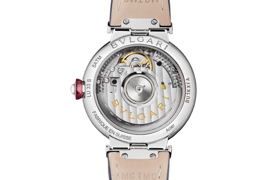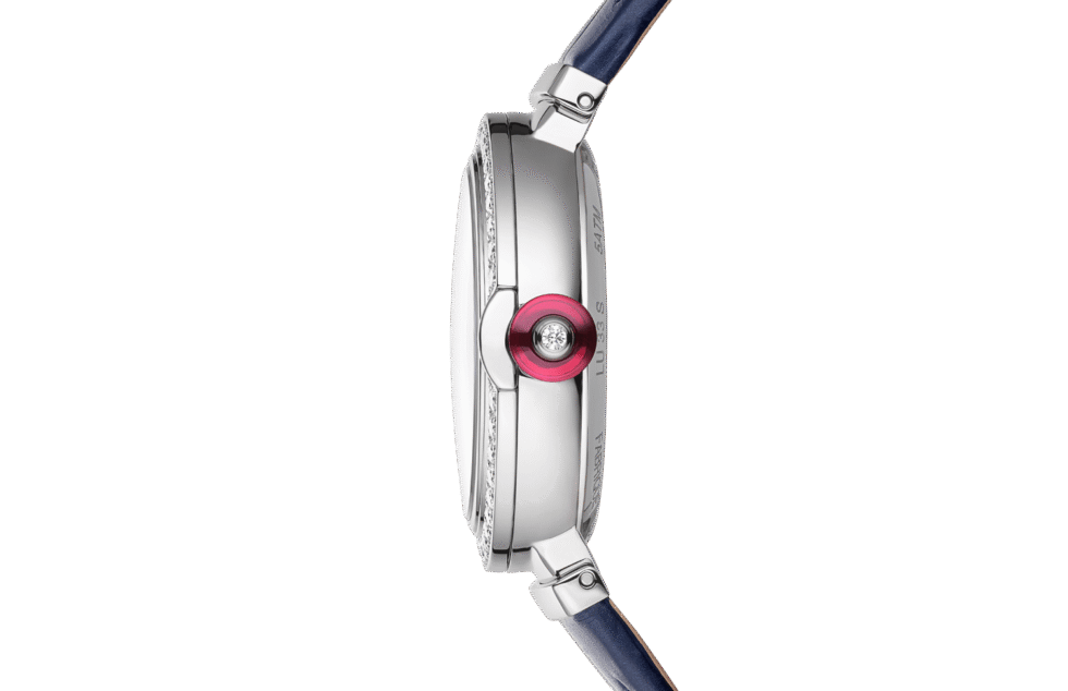 Watch, Lucea Leather, 33, mm, Case Steel, Dial Stone, Bracelet Alligator, Bracelet colour Blue, Hour-minute-second-date, Automatic, Diamonds, Partial setting, Diamonds 54, pce, Weight diamonds 1.38, [ct], Waterproof 50, [m] Blue aventurine dial