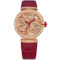 LUP33SKGDL-102833 Bvlgari  The Bvlgari Lvcea LUP33SKGDL-102833 is a testament to modern architecture and feminine allure, epitomizing strength and sensuality. This watch shines with a radiant feminine aura, paying homage to light itself. The skeletonized dial of the LVCEA Skeleton watch unveils its inner beauty, designed for women who appreciate the delicate complexity of mechanical timepieces. At the heart of this stunning timepiece lies a mechanical manufacture movement with automatic winding, presented in a skeleton execution that showcases the intricacies of the watch. The 33mm 18 kt rose gold case is adorned with diamonds, adding a touch of opulence. The 18 kt rose gold crown features a synthetic cabochon-cut rubellite and diamond, further enhancing its elegance. A remarkable aspect of this timepiece is the openwork BVLGARI logo dial, set with diamonds, creatively incorporating the letters of the watchmaker’s logo into the design. The meticulous craftsmanship in achieving this design is a display of Haute Horlogerie at its finest. The red alligator strap and 18 kt rose gold ardillon buckle complete the ensemble, providing both style and comfort. In summary, the Bvlgari Lvcea LUP33SKGDL-102833 is a fusion of creativity, luxury, and mechanical excellence, making it a true masterpiece in the world of horology. Its modern design and meticulous craftsmanship make it a delightful choice for women who appreciate both aesthetic and technical brilliance in a timepiece.