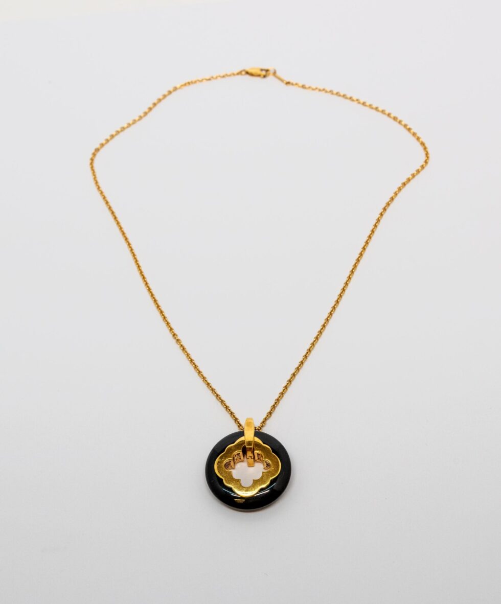 10076404 Carrera Y Carrera 18K Yellow Gold and Black Onyx pendant. 18K Yellow Gold cable chain with lobster claw lock. The pendant is made of Black Onyx disk and 18K Yellow Gold insert in the middle.