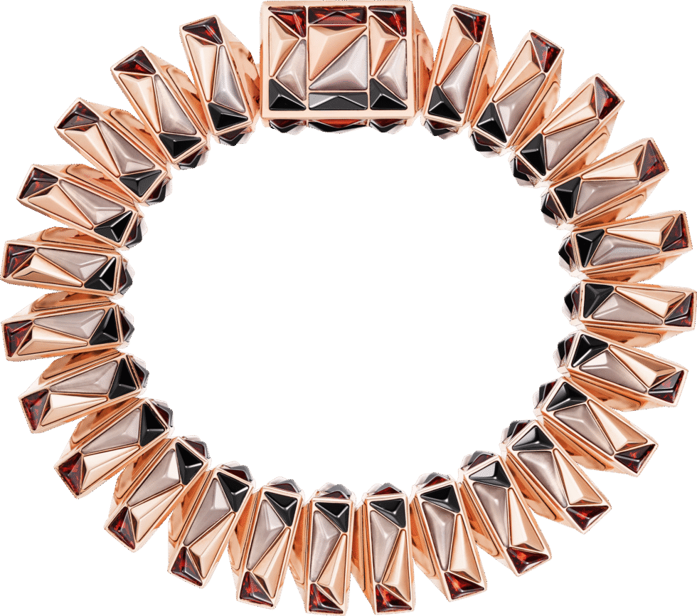 HPI01564 Cartier Libre The Cartier Libre HPI01564 watch is an exquisite timepiece that features a 99.95 x 84.75 mm rhodiumized rose gold case. The case is adorned with 418 brilliant-cut diamonds totaling 5.6 carats, 81 pyramid-cut garnets, 54 gray pyramid-cut moonstones, and 81 black pyramid-cut spinels. The reversible strap is also decorated with diamonds and features a combination of black and gold tones. The watch has a gold dial with rose gold-toned steel sword-shaped hands, which adds to its sophisticated appearance. The watch is powered by a quartz movement and has a solid case back. The front side of the watch is protected by sapphire crystal. The watch is water-resistant up to 30 meters, making it suitable for everyday wear. The Cartier Libre HPI01564 watch displays hours and minutes and has a case thickness of 20.32 mm. This timepiece showcases Cartier’s expert craftsmanship and attention to detail, making it a true statement piece for any occasion.