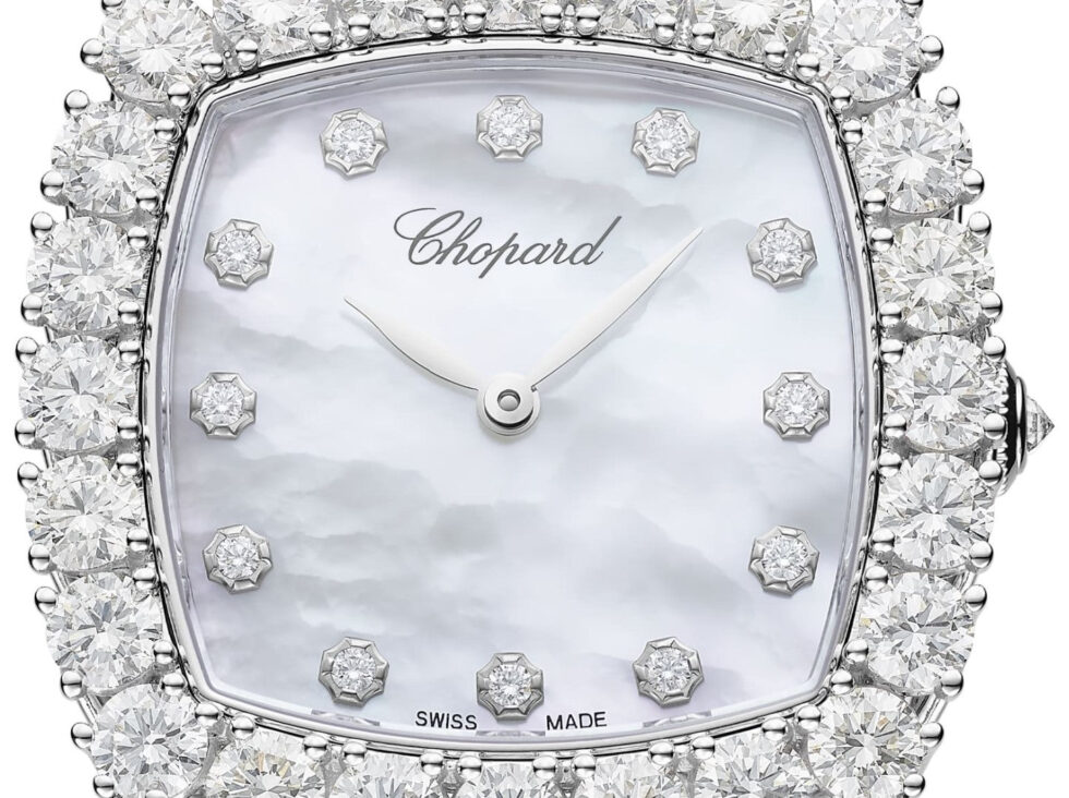 10A386-1106 Chopard L’Heure Du Diamant Small Cushion 18K White Gold & Diamonds Ladies Watch.