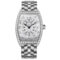 Stainless Steel. Hand polished. Hand set with 68 brilliant-cut diamonds (1.34 carats). Water resistant up to 30 meters. Rhodium plating. Width: 31 mm x Length: 43 mm x Thickness: 7.3 mm . Sapphire crystal Hours, Minutes Crown with 2 positions: 1. On. 2. Time Setting MVT FM 2750-QZ . Quartz movement . Battery life of 3 years . 5 Rubies. Diameter: 17.50 mm. Thickness 2.75 mm . Quartz frequency at 32’768 Hz Cotes de Geneve and sunray brushing on the casing ring Stainless Steel bracelet. Hand polished. Stamped guilloche with sun pattern . Raised numbers with a mirror polish