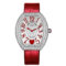 Heart Case. 18k White Gold. Hand polished. Hand set with 180 brilliant-cut diamonds (3.28 carats). Rhodium plating. Water resistant up to 30 meters. Width: 34.5 mm x Length: 39.8 mm x Thickness: 7.8 mm. Sapphire crystal Hours, Minutes Crown with 2 positions: 1. On. 2. Time Setting MVT FM 2750-QZ. Quartz movement. Battery life of 3 years. 5 Rubies. Diameter: 17.50 mm. Thickness 2.75 mm. Quartz frequency at 32’768 Hz Cotes de Geneve and sunray brushing on the casing ring Hand sewn alligator strap 18k White Gold buckle. Hand set with 6 brilliant-cut diamonds (0.10 carats). Hand polished. Rhodium plating Stamped guilloche with sun pattern. 20 Layers of translucent lacquer. Red Heart at 6 o’clock