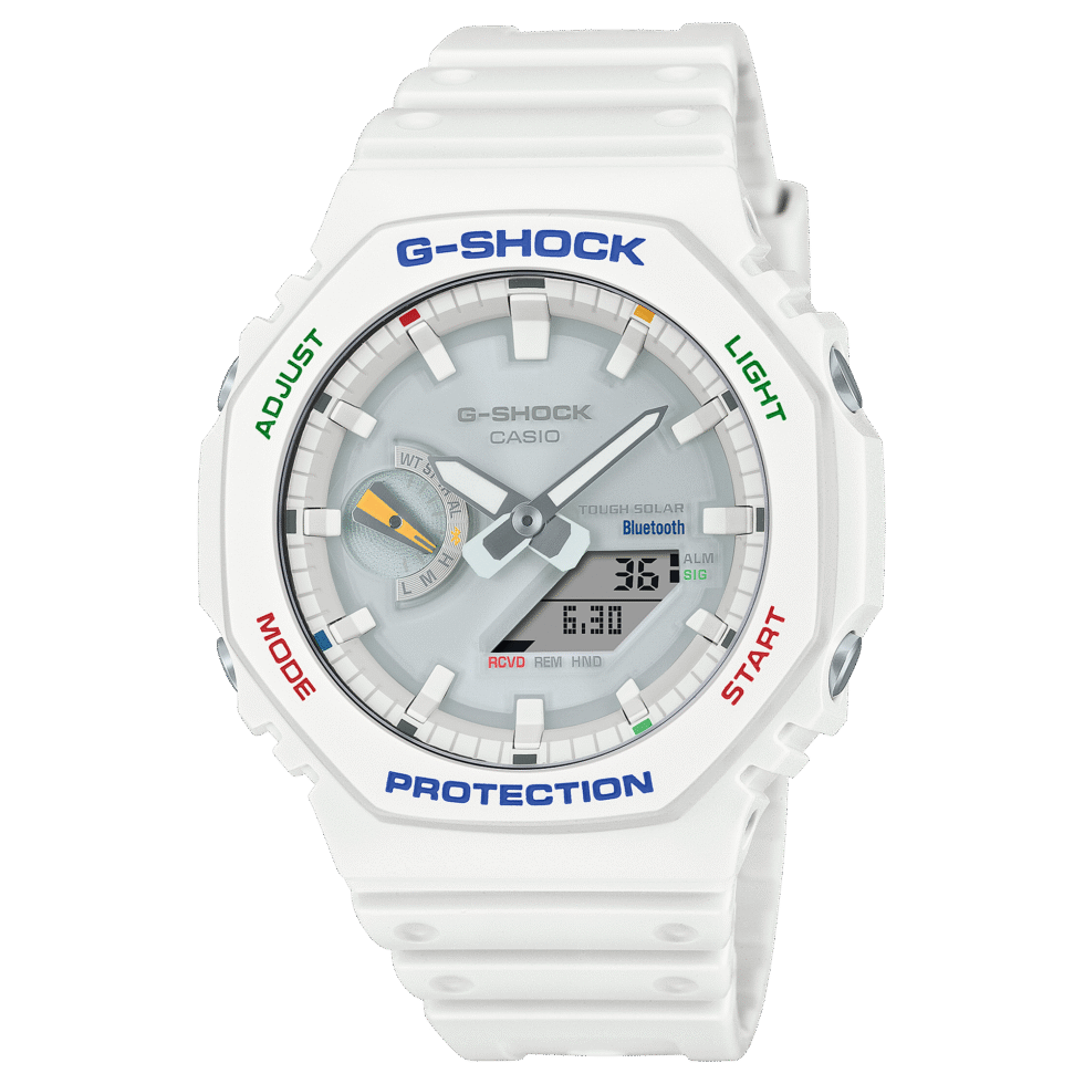 The watch is based on the GAB2100, which maintains the distinctive octagonal form of the GA2100 and has handy functions like Smartphone Link and Tough Solar charging. It also employs the Carbon Core Guard structure to preserve a similar fit on the wrist as the original model.