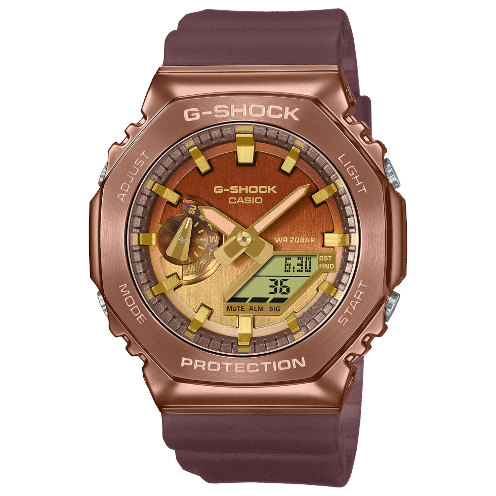 These metal-clad takes on iconic G-SHOCK favorites shine with lavish style thanks to the colorfully ion-plated metal bezel, and the metallic vapor deposition on the dial (GM2100 and GM110) or glass printing on the watch face (GM5600). Add in a colorful translucent band with matte finish, and you’re ready to ride through the desert wilderness in search of freedom and fun.