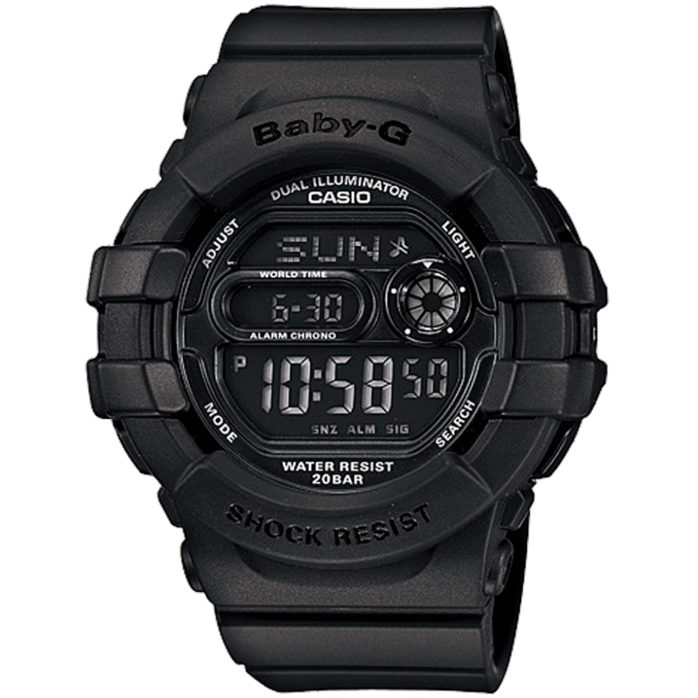 Baby-G big size and dual illuminatorBaby-G goes big with a collection of new models that take female timekeeping from petite and pretty, to big and bold. A Dual Illuminator lights up both the digital displays and dial to facilitate reading in the dark. Illumination also causes the colors of the digital displays to change as well.Like all Baby-G models these are specially shaped to keep exterior impact and shocks from reaching buttons, glass, and other components.