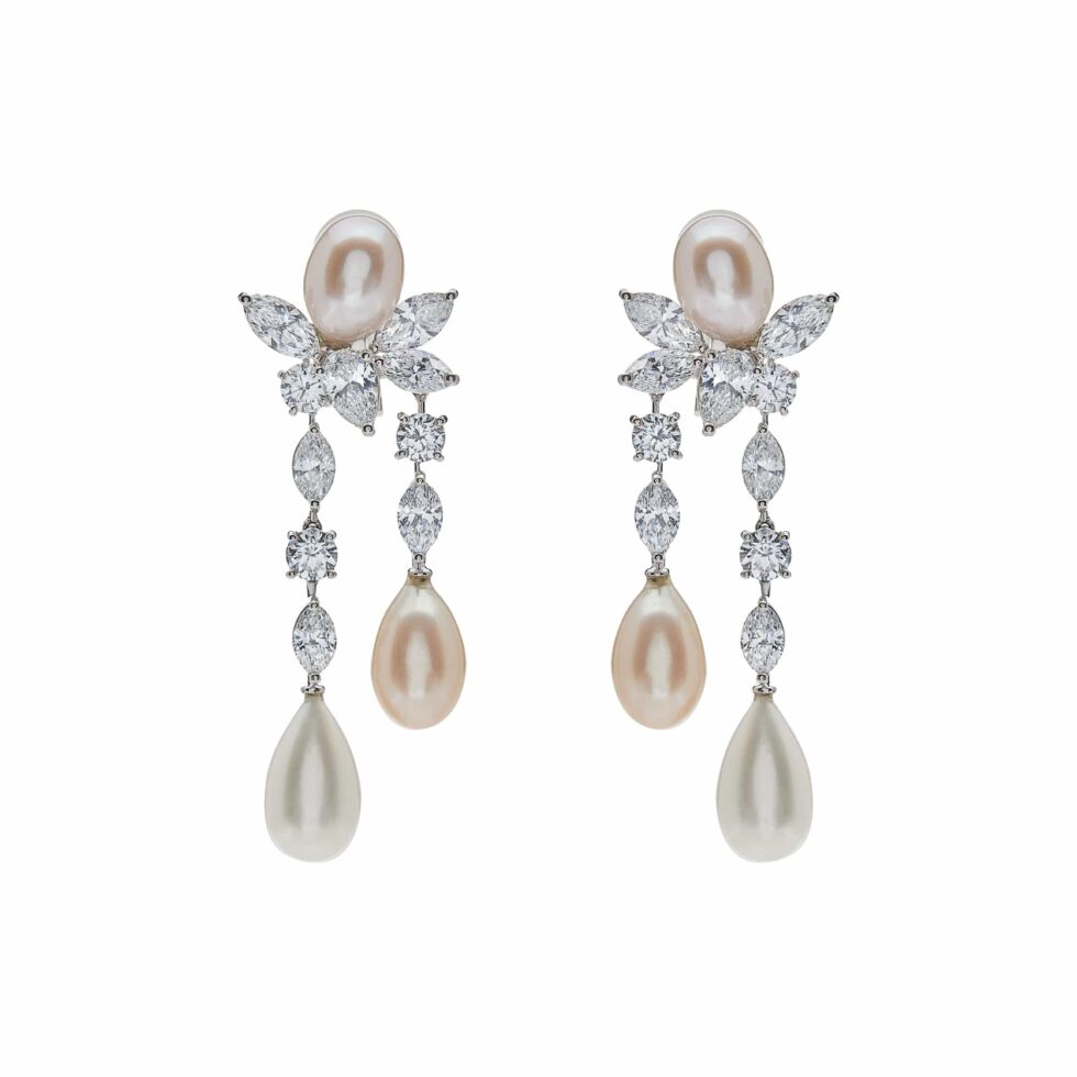 Graff Platinum and White Gold Diamond and Pearl Drop Earrings