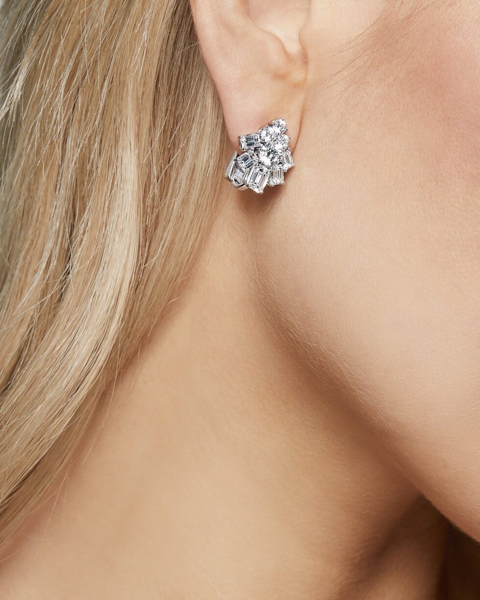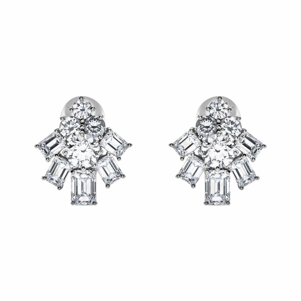 Graff White Emerald Cut and Round Diamond Earrings
