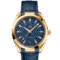 522.53.41.21.03.001 Omega. The Omega Seamaster Aqua Terra Co-Axial Master Chronometer 522.53.41.21.03.001 is a luxury watch with a 41 mm case made of 18K yellow gold. The watch features an 18K yellow gold bezel and a screw-in crown also made of 18K yellow gold. The polished blue ceramic dial has Tokyo laser engraving and is adorned with luminescent hour markers made of 18K yellow gold with a cut finish. The faceted 18K yellow gold hands are also coated with luminescent material for visibility in low light conditions. The watch offers various functions, including hours, minutes, seconds, date, chronometer, time zone function, and anti-magnetic. The Omega logo is placed below the 12 o’clock position, adding to the elegance of the watch. The watch is powered by a self-winding mechanical movement, Calibre 8901, which provides a power reserve of approximately 60 hours. The case is 13.2 mm thick and has a transparent case back to allow a view of the movement. The front and back of the watch are protected by sapphire crystal, which is highly scratch-resistant. The watch comes with a blue alligator leather strap with an 18K yellow gold folding buckle. It is water-resistant up to 150 meters, making it suitable for swimming and snorkeling, but not for diving. Overall, the Omega Seamaster Aqua Terra Co-Axial Master Chronometer 522.53.41.21.03.001 is a luxurious and versatile timepiece that combines both style and functionality.