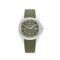 Patek Philippe reinterprets the quartz Aquanaut Luce with a larger diameter and a new integrated composite strap. This watch features a 38.8mm stainless steel case, screw-down crown and solid case back. The bezel is lit up by a row of 48 diamonds (~1.11 ct) surrounding the khaki green dial embossed with the Aquanaut pattern. The khaki green rubber strap closes with an Aquanaut fold-over clasp.