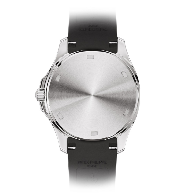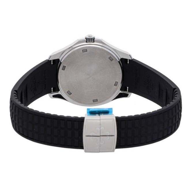 Preowned-5267/200A-001 Patek Philippe. The Patek Philippe Aquanaut 5267/200A-001 is a high-end watch with a 38.8mm stainless steel case. The fixed stainless steel bezel is set with 48 diamonds, totaling approximately 1.11 carats, adding a touch of luxury to the watch’s design. The black dial features silver-tone luminous hands and Arabic numeral hour markers, as well as minute markers around the outer rim. A date window is located at the 3 o’clock position, making it easy to keep track of the date. The black rubber strap with a stainless steel fold-over clasp provides a comfortable and secure fit, while the quartz movement, powered by the Caliber E 23-250 S C, ensures precise timekeeping. The watch is water-resistant up to 120m/393ft, making it suitable for swimming, snorkeling, and other water activities, but it should not be worn while diving. Overall, the Patek Philippe Aquanaut 5267/200A-001 is an exquisite watch that combines style and functionality. The diamond-set bezel adds a touch of luxury to the watch’s design, while the water-resistant construction and precise quartz movement make it a practical and reliable timepiece for everyday wear.