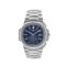 The Patek Philippe Nautilus 5976/1G-001 Chronograph features a round octagonal bezel and 40.5mm stainless steel construction. In the center, lays a blue embossed dial with white gold hands and hour markers surrounded by a satin-finished steel bezel. This timepiece is finished with a stainless steel bracelet and fold-over clasp.