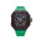 The RM 65-01 is typical Richard Mille in terms of style and material. Executing sportiness with techno-industrial movement finish, skeletonised dial, and multicoloured indicators. Based on the Vaucher VMF 6710, the RMAC4 inside the RM 65-01 is a high-frequency movement running at 36,000 beats per hour that has an integrated split-seconds chronograph, making it one of the most sophisticated movements in Richard Mille’s collection.