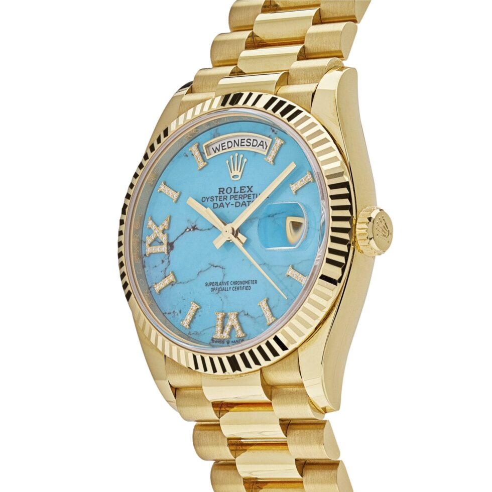 Rolex Day-Date 128238 Yellow Gold Turquoise Diamond Dial