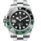 Experience the pinnacle of luxury with the 2022 Rolex GMT-Master II, a masterful blend of style and functionality. This exquisite preowned watch boasts a 40 mm stainless steel case, featuring a distinctive two-tone Cerachrom bezel in green and black ceramic. The bold black dial is accentuated by luminous hour markers and hands, ensuring optimal visibility in any light.