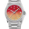 16.9200.670/33.MI001 Zenith. The Zenith Defy Midnight 16.9200.670/33.MI001 is a stunning ladies’ watch that exudes elegance and luxury. The watch features a 36mm stainless steel case and a fixed stainless steel bezel set with 44 diamonds, totaling approximately 1.48 carats. The red to yellow gradient dial with guillochĂ© pattern is a standout feature of this timepiece. The watch has silver-tone luminous hands and 11 diamonds set as hour marks, which enhance the visual appeal of the watch. The date window is located at the 3 o’clock position, making it easy to read the date. The watch comes with a stainless steel bracelet with a deployant buckle that ensures a secure and comfortable fit on the wrist. The watch is powered by the Zenith Elite caliber 670SK automatic movement that beats at 28,800 vph and has 27 jewels. The watch has an approximate power reserve of 50 hours, making it a reliable timepiece that can last for several days without needing to be wound. The watch is water-resistant up to 100 meters (330 feet), making it suitable for swimming and snorkeling but not for diving. The watch’s luxurious design and reliable performance make it an excellent choice for women who want to make a fashion statement while still having a functional timepiece. In summary, the Zenith Defy Midnight 16.9200.670/33.MI001 is a stunning ladies’ watch that boasts a luxurious design and reliable performance. The watch’s diamond-set bezel and guillochĂ© pattern dial make it a standout timepiece, while the Zenith Elite caliber 670SK movement ensures accurate timekeeping.